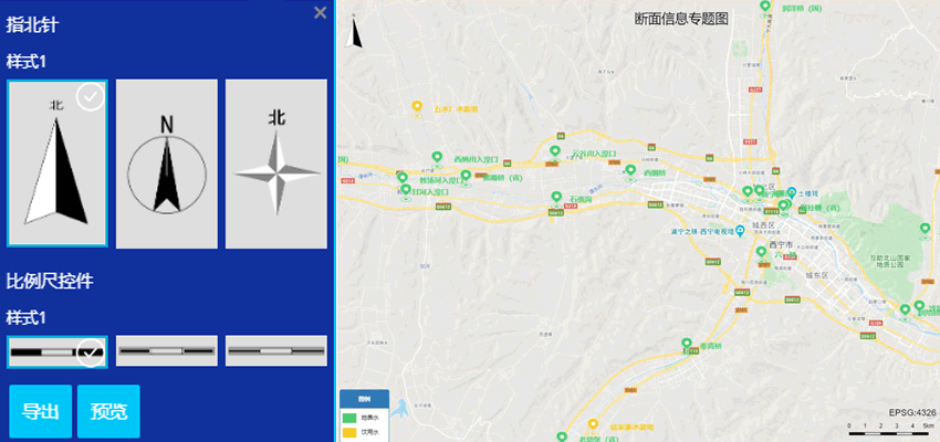 可以通过富客户端WebGIS平台,制作简单的专题图。除了图层图例控制、透明度设置、比例尺和指北针等的设置,更有在线地图和离线地图、网络地图和本地数据的多源融合可视化及制图功能。