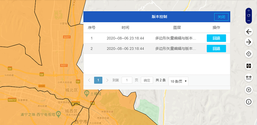 富客户端WebGIS平台具有矢量数据的常规编辑功能,用户可以调用远程发布的数据服务,打开编辑功能对数据进行编辑。也可以将本地的数据加载到WEB端,对矢量数据进行编辑。平台提供了版本控制功能,实现了基于时间的多版本历史编辑数据入库,支持基于版本的回退操作,极大地提升了网络在线矢量地图的编辑能力。