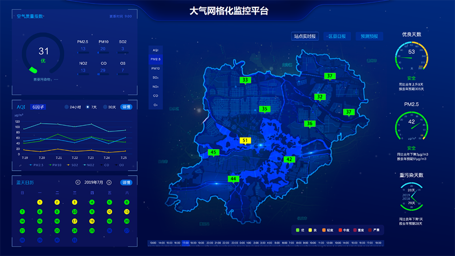 大气网格化监控平台将大数据、3S、人工智能、物联网等技术与空气质量监测、管理、治理等体系进行深度融合,旨在构建集监测、评价、预警预报、污染溯源及精细化管控于一体的智能应用系统,真正解决大气污染防治中面临的预报难、追溯难、取证难、协同难等问题,帮助各地政府建立大气污染防治长效机制,实现从治标到治本、从攻坚战到常态化监管的目标。