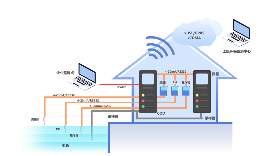 水污染源在线监测系统由监测子系统、采样及预处理子系统、数据采集与处理子系统、监视传感子系统、监测站房子系统、排放口建设子系统等组成。系统可监测pH、COD、氨氮、总磷、总氮、流量等参数,以及六价铬、总铬、铅、镉、汞、砷、铜、锌、镍及其他重金属因子。