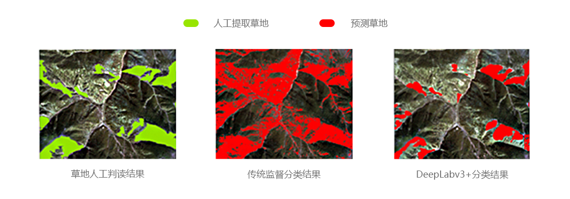 基于深度学习的语义分割方法,引入DeepLabv3+卷积网络模型,通过样本学习训练,创建草地提取智能模型。该方法有效的解决了传统草地分类方法耗时耗力、误差大、精度低的问题。