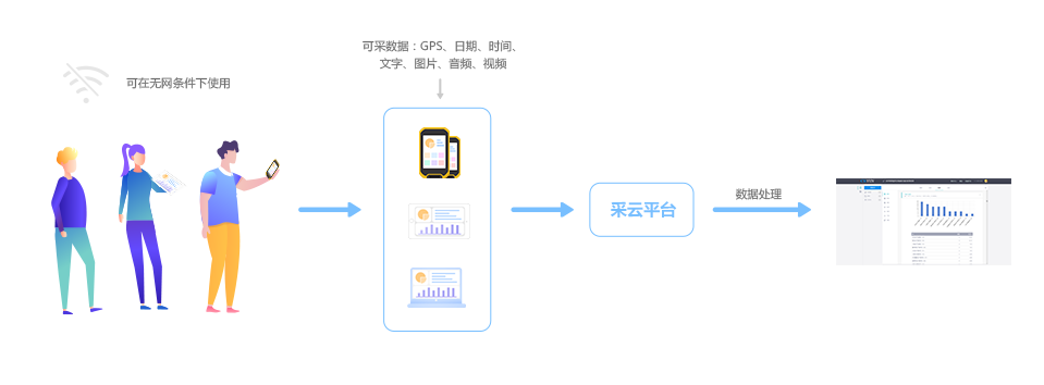 智慧信息采集设备是由我公司推出的适合于户外数据移动采集的设备。该产品利用其高效、易操作、低成本、多层次扩展和快速部署等显著优势,在测绘、农业、国土、林业、水利、环保等领域提升用户数据采集和汇总能力,减少投资成本,高效应对大数据挑战,促成业务突破和转型。
